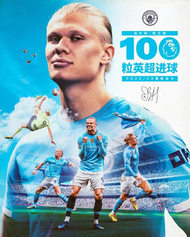 破门之后,哈兰德迎来了里程碑时刻,就是收获个人英超第100球,成为了33年史上最快达成英超百球的球员。据统计,哈兰德是第35位在英超联赛中打进100粒进球的球员,他只用111场比赛就达到了这一成就,外加助攻18次,总计参与118个进球,平均每78分钟参与1球,英超历史效率最高,同样创造历史纪录。