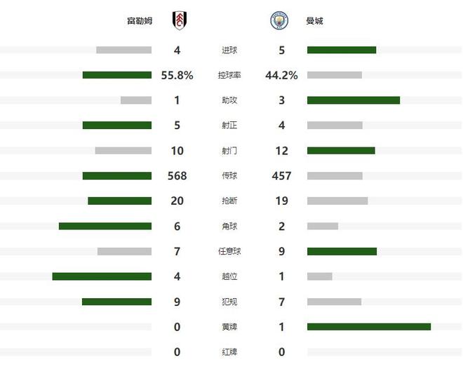 下半场刚刚开打不久,曼城就进一步扩大了领先的优势,多库反击中左路带球杀到前场后,送出一脚斜塞,哈兰德脚后跟把球停给了右路前插的福登,后者小角度破门得分,将比分改写为了4-1,连续两场上演梅开二度。第54分钟杀疯了的曼城,再次攻破富勒姆的球门,表现活跃的多库,前场抢断后带球内切,随后起脚兜射远角建功,比分被进一步拉大到了5-1,虽然富勒姆没有放弃,靠着伊沃比的进球,丘库埃泽的梅开二度连入3球,帮助富勒姆将比分追至4-5,但无力改变主场输球的结局。