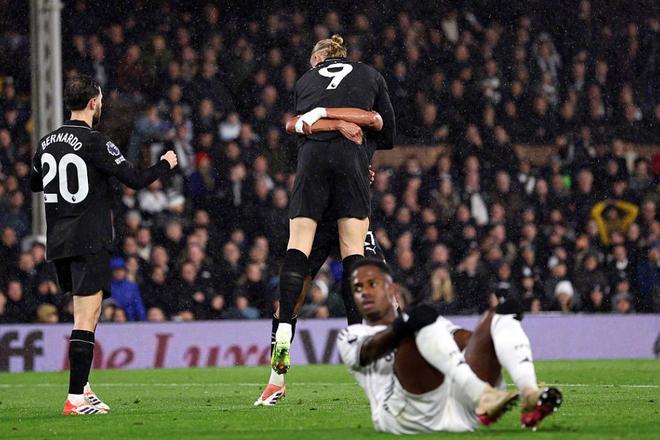比赛正式开打后,曼城就大举压上围攻富勒姆,第6分钟哈兰德就差点帮助球队取得梦幻开局,可惜低射击中立柱被弹出,不过第17分钟,挪威魔人还是接到多库左路传中后,禁区内扫射破门,帮助曼城取得了1-0的领先,凭借此球哈兰德只用了111场英超比赛就打进了100粒进球,创造了英超历史最快百球纪录。
