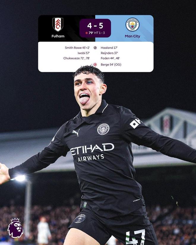 连丢3球险失好局!曼城5-4富勒姆先赛距榜首2分 哈兰德1射2传