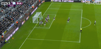 第15轮,纽卡斯尔联主场对阵伯恩利,上半场吉马良斯主罚角球直接破门,成为首位在