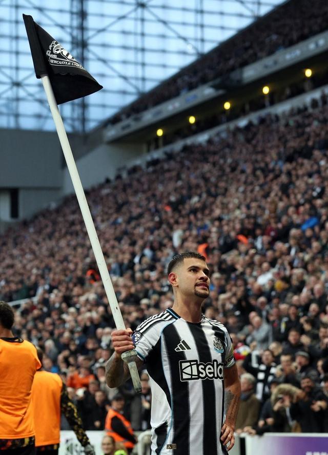 赛场做到这一点的纽卡球员。进球后,吉马良斯还拔起角旗杆庆祝。