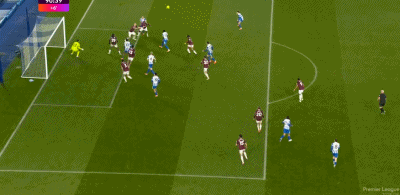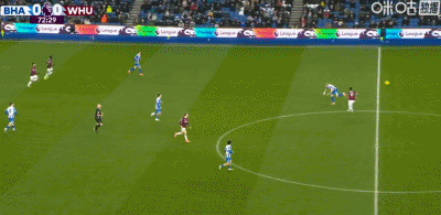 第73分钟,鲍恩倒地情况下小角度破门,西汉姆联1-0布莱顿