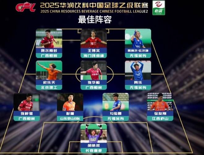 北京时间12月12日,在2025赛季中国足球职业联赛颁奖会上公布了本赛季三级联赛最佳阵容,中超法比奥、瓦科领衔,蒋圣龙、朱辰杰入选。中超联赛前锋:法比奥(北京国安)、莱昂纳多(上海海港)、费利佩(成都蓉城)中场:卡扎伊什维利(山东泰山)、米特里策(浙江俱乐部绿城)、罗慕洛(成都蓉城)、马特乌斯-维塔尔(上海海港)后卫:提莫-莱切特(成都蓉城)、蒋圣龙(上海申花)、朱辰杰(上海申花)守门员:刘殿座(成都蓉城)中甲联赛前锋:姆本扎(辽宁铁人农商银行)、埃里克斯(定南赣联)、穆谢奎(大连鲲城)中场:安以恩(辽宁铁人农商银行)、罗萨(广东广州豹)、尼康(广东广州豹)、向余望(重庆铜梁龙)后卫:阮奇龙(重庆铜梁龙)、徐继祖(延边龙鼎可喜安)、杨云(石家庄功夫)守门员:刘伟国(辽宁铁人农商银行)中乙联赛前锋:费尔南多(广西恒宸)、凯赛尔-吐尔逊(无锡吴钩)、王博文(海门珂缔缘)中场:同乐(无锡吴钩)、史乐天(北京理工)、张华峻(广西恒宸)后卫:彭啸(山东泰山B队)、张梓健(广西恒宸)、勾俊晨(无锡吴钩)、徐友刚(江西庐山)守门员:胡皓然(长春喜都)